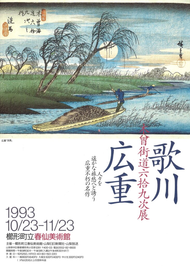 展覧会 2025.06.28 過去の展覧会 1993(平成5)年度 名取春仙とその周辺展 4月29日~5月23日 歌川広重 木曾街道六拾九次展 人々を遥かな旅愁へと誘う広重不朽の名作 10月23日~11月23日