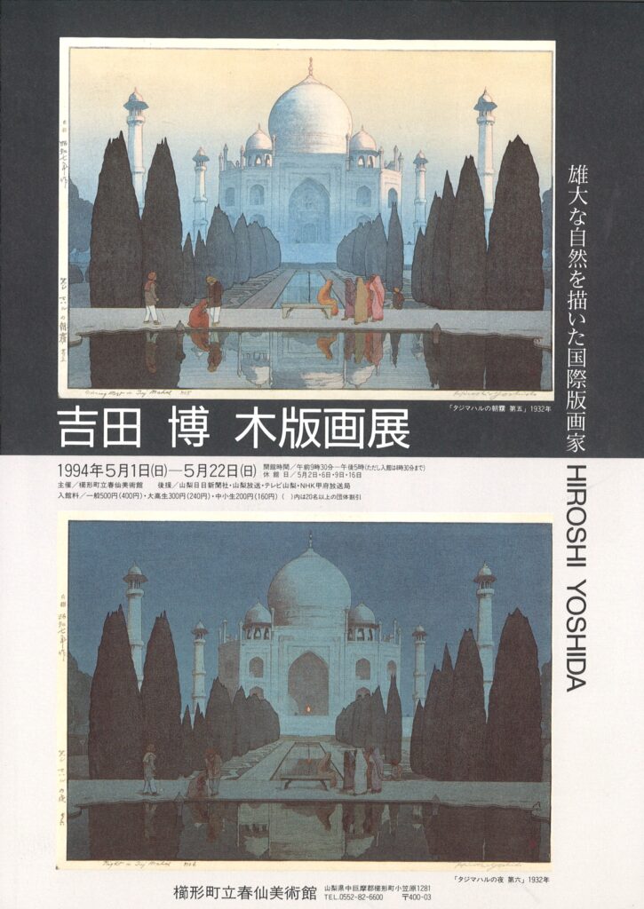 展覧会 2025.06.28 過去の展覧会 1994(平成6)年度 吉田 博 木版画展 雄大な自然を描いた国際版画家 5月1日~5月22日 写楽デビュー 二〇〇年記念 ベルギーから里帰りの名品を中心に「写楽」と「歌麿」江戸の浮世絵展 10月22日~11月20日