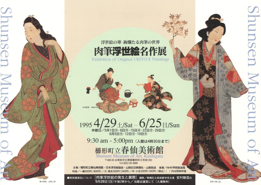 展覧会 2025.06.28 過去の展覧会 1995(平成7)年度 浮世絵の華-絢爛たる肉筆の世界- 肉筆浮世絵名作展 4月29日~6月25日 浮世絵名品展 初公開グラブホーン・コレクション 11月12日~12月10日