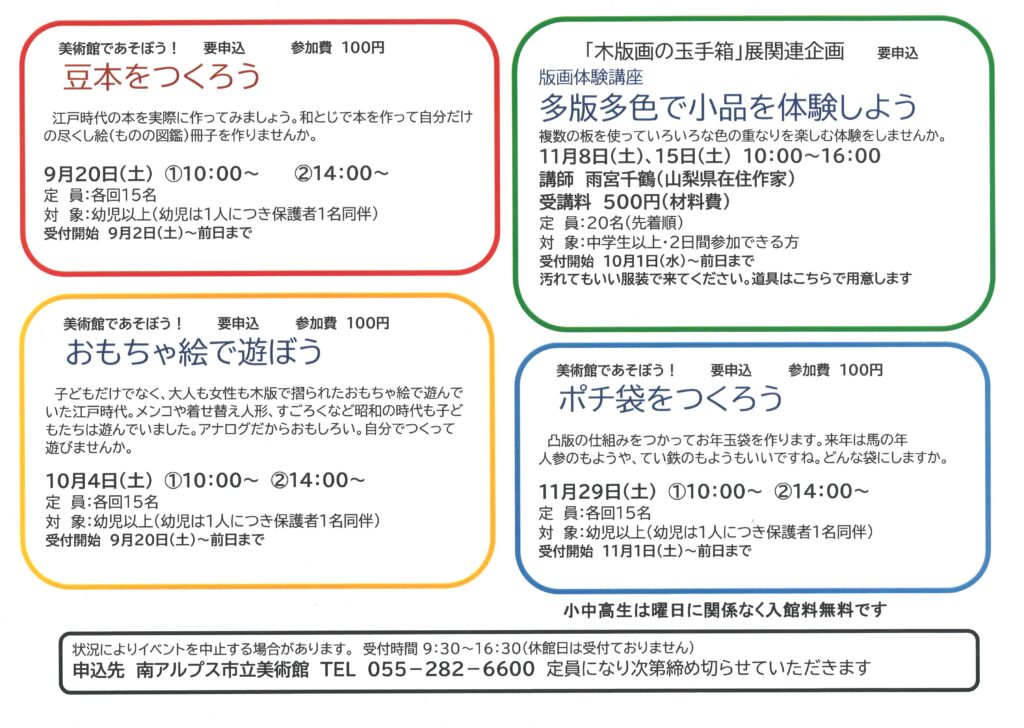 9月・10月・11月 美術館であそぼう!×版画体験講座