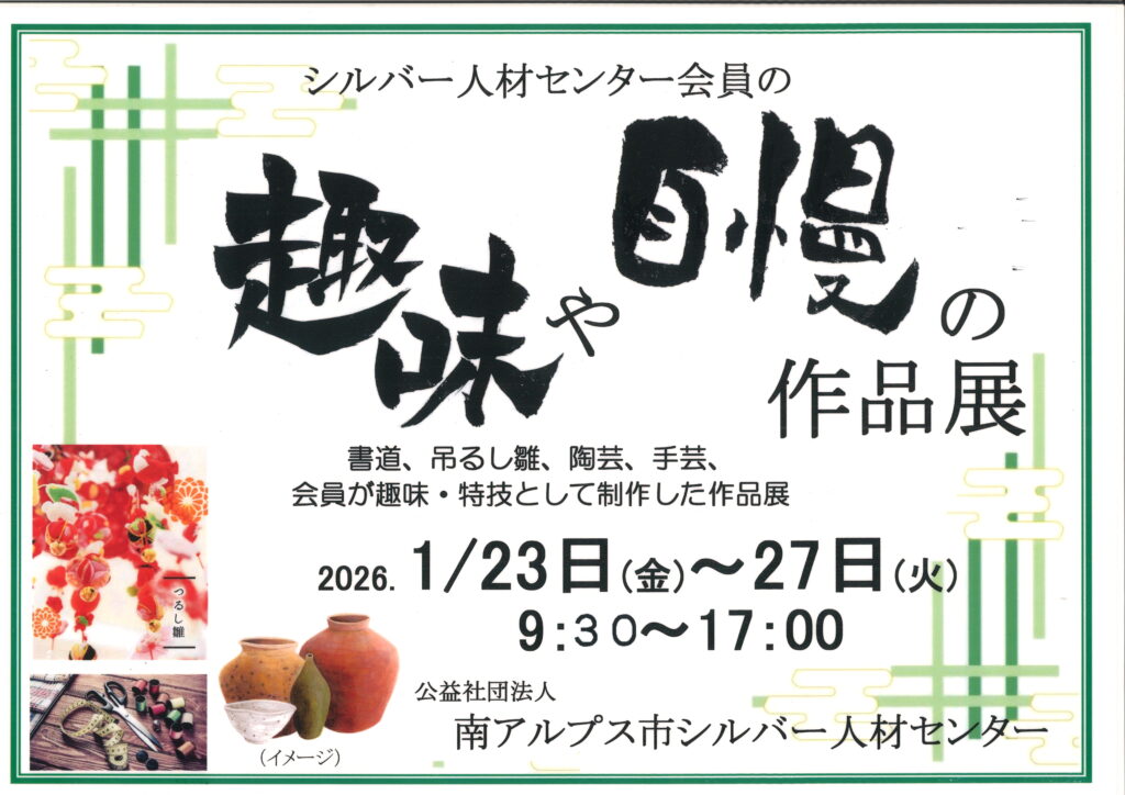 【市民ギャラリー】シルバー人材センター会員の趣味や自慢の作品展