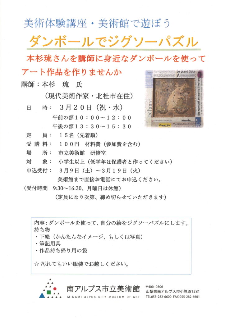 3月20日(水・祝) 美術館で遊ぼう!×美術体験講座 ダンボールでジグソーパズル!