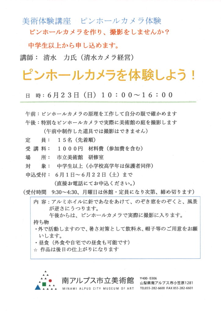 6月23日(土) 美術体験講座 ピンホールカメラを体験しよう!